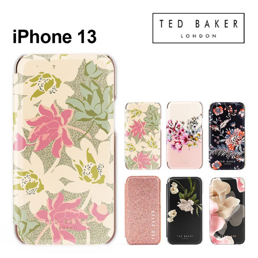 Ted Bakerの特徴である花柄やグリッターであしらわれた手帳型スマホケース。内側にはミラーが搭載されていて、移動中にタッチアップしたいときにも役立ちます。